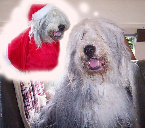 "I see Santa!" exclaimed Scruffy.  "Santa is very furry, and has a pink tongue!"