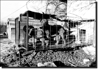 "Pain is all we know," said the dog, "and hunger and filth and disease. We are never let out of these cages. Our feet get cut and bleed. No one cares. I'm one of the lucky ones because at least I see the light of day."