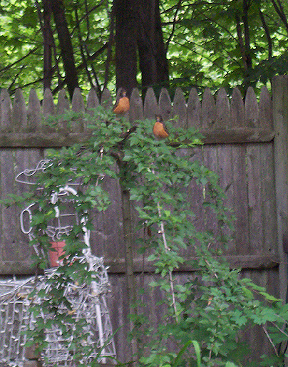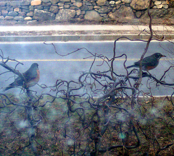 | Mr. Robin was relieved to see his mate home safe and sound.