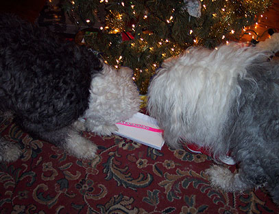 While Henry and Molly were wrapping presents in the next room, Patrick found the pawfect oppawtunity to give Cricket her gift while they were alone.