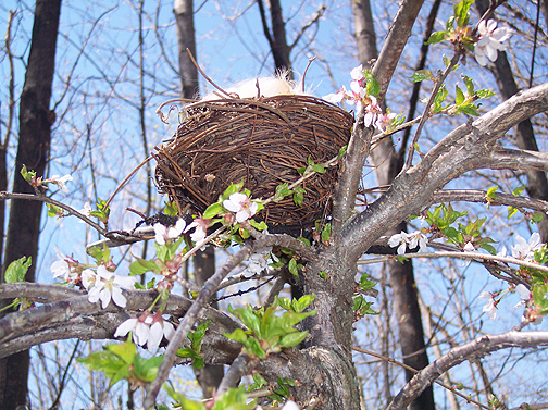 Mr. Robin flew up to the nest with some food for the mom-to-be.
