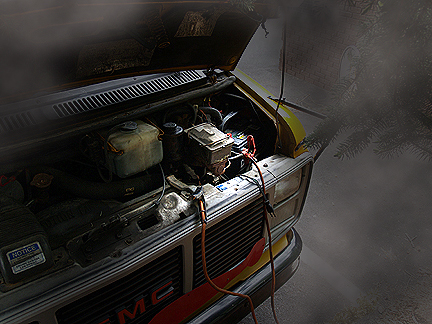 The mechanic flashed his light on Wiggle's battery.  He had been through this many times tonight, and he knew exactly what to do.