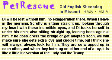 Scruffy and Di had very big feelings of happiness and sadness all at the same time. "We're getting 'dopted!" said Lady Di.