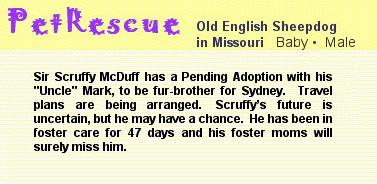"I'll see you at the Rainbow Bridge some day," said Scruffy, "but that better not be for a long, long time. You take care of yourself and stay healthy."